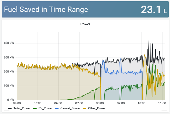 In order to reduce reliance on generators in the case of a power outage, the Fuel Saving Mode is automatically activated. In this mode, the EcoPhi Pro Box intelligently controls the inverters to ensure that the generators provide a specific percentage of needed power. This specific percentage is strategically set to balance efficiency and power needs and can be adjusted through the platform.